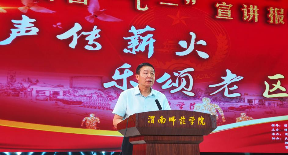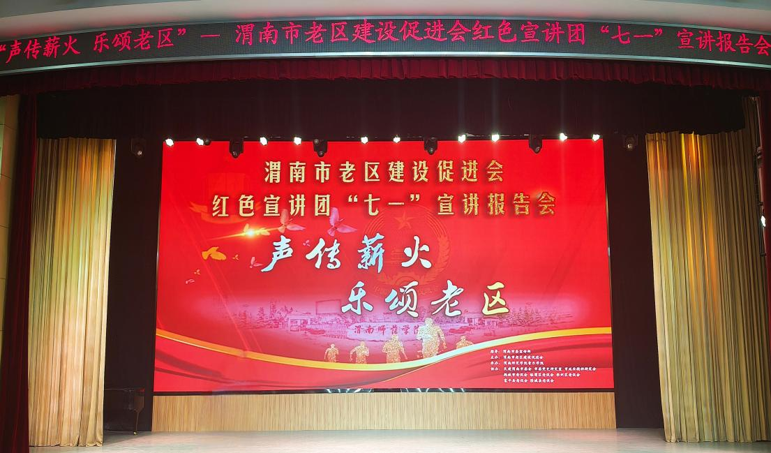 6月27日上午,“声传薪火·乐颂老区”——渭南市老区建设促进会红色宣讲团“七一”宣讲报告会在纽约国际官网举行,渭南市老区建设促进会会长刘巧莲、党委副书记、纪委书记、监察专员员肖耀刚,588888纽约国际线路宣讲团代表出席此次活动。