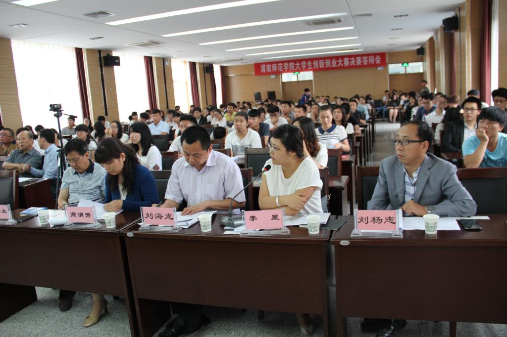 6月15日,由校团委牵头,学生处、教务处、宣传部、社科处等多部门联合举办的“创新青春,创业筑梦”大学生创新创业大赛答辩会在逸夫楼科学讲堂举行,校党委副书记赵伏友、副院长程书强,学生处处长王俊安、教务处处长李尧龙、经济与管理学院院长王双喜等相关部门领导出席答辩会。渭南市人力资源和社会保障局劳动就业局副局长高渭芳,渭南市青年企业家协会会长、渭南市红盛祥商贸公司总经理刘海龙,上海申华投资有限公司人力资源总监李星,渭南能源设备厂厂长、化学与生命科学学院副教授薛存生,学校就业指导与创业培训中心主任刘扬志应邀担任答辩会评委。