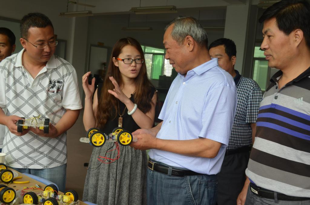 张金安听取了科技园总经理王建平对园区基础设施维修改造、功能区域划分的介绍,以及“省级大学科技园”申报工作的进展情况、学生实体创业的推进落实情况、科技园未来的工作规划等方面工作的汇报,参观了大学生实体创业办公室和大学科技园孵化器大楼。在孵化器大楼内的实训基地观看了创新创业学生的作品,了解了学生从自主构思、设计,老师指导,团队研究、制作,到最终完成作品的实训流程。