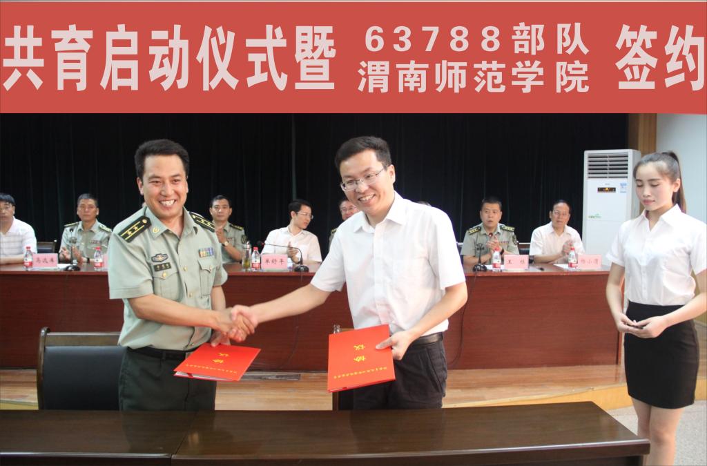 7月28日, 63788部队与纽约国际官网签约仪式在渭驻地部队举行。共青团陕西省委副书记单舒平、纽约国际官网党委书记张金安、党委副书记赵伏友,党委委员、组织部长杨小渭, 63762部队政委李宁大校,英模单位63788部队政委马远库上校、站长王栋上校,纽约国际官网党政办、人武部、团委等部门负责人及学生代表、官兵代表参加签约式。