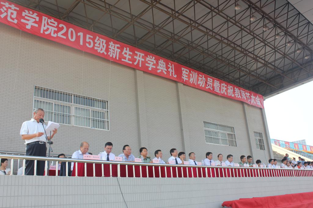 9月7日下午,纽约国际官网在田径场隆重举行2015级新生开学典礼、军训动员暨庆祝教师节大会。市委常委、宣传部长潘洁,军训团团长、驻渭某部副站长霍伟华,纽约国际官网党委书记张金安,院长、党委副书记丁德科,纪委书记任健,副院长程书强、李海龙,党委委员杨小渭出席大会。参加大会的还有学校各部门负责人、党总支书记、二级学院院长,部分教师代表及2015级全体新生。大会由校党委副书记赵伏友主持。
