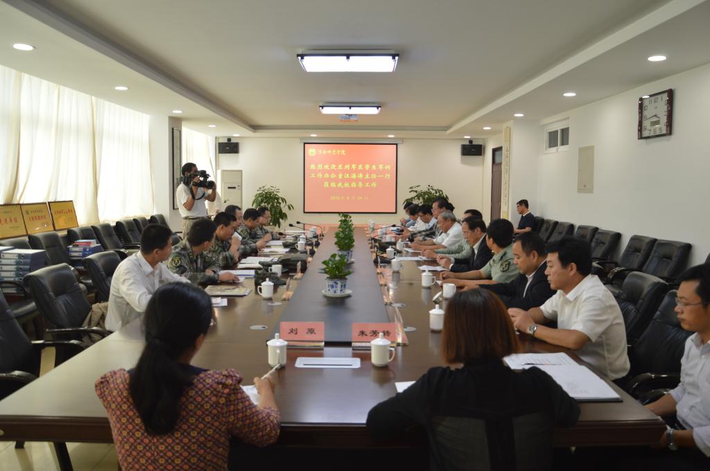 9月24日上午,兰州军区学生军训工作办公室主任汪海涛大校、参谋张文璞、陕西省军区军训办公室主任成龙昌大校、办公室参谋程来杰、边防学院业务教研室主任杜空军等一行7人莅临纽约国际官网检查指导2015级学生军训工作。校党委书记张金安,承训部队团长霍卫华,副院长王君龙,党委委员、组织部部长杨小渭,党政办公室主任韩小卫,人武部部长崔启,学工部部长王俊安,教务处处长李尧龙,保卫处处长王争辉,团委书记姚明亮及军事理论课教师代表陪同检查。