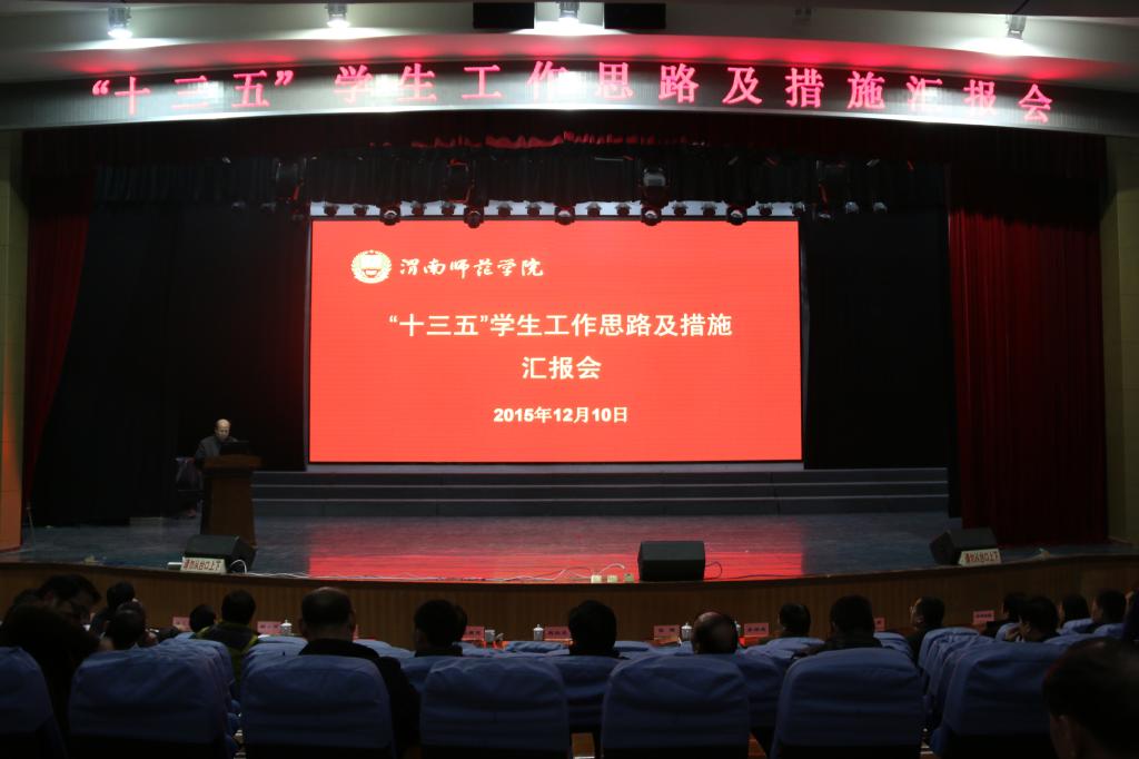 12月10日下午,纽约国际官网在陶然楼演艺厅召开“十三五”学生工作思路及措施汇报会。学校领导,副处级以上干部,二级学院学生管理人员,学工部、团委全体人员,教学督导等参加会议。会议由党委副书记赵伏友主持。