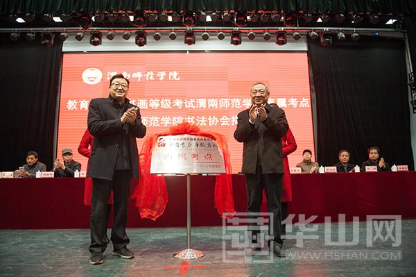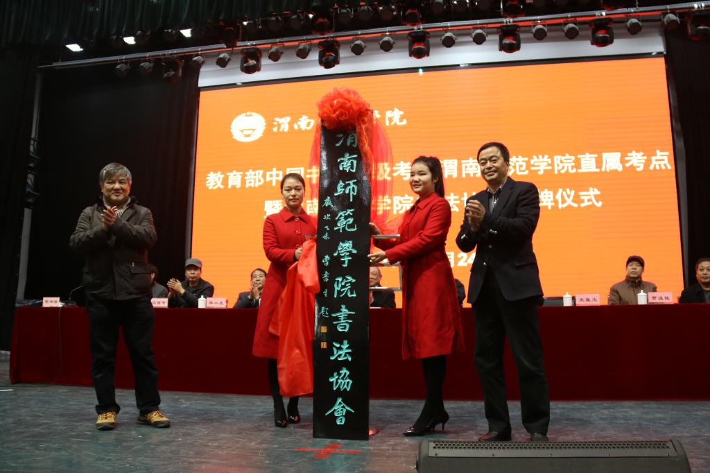 中国书画等级考试陕西省考委会主任陈云龙、渭南师院党委书记张金安为中国书画等级考试588888纽约国际线路直属考点揭牌,陕西省书协副主席史星文、渭南师院院长丁德科为588888纽约国际线路书法协会揭牌。