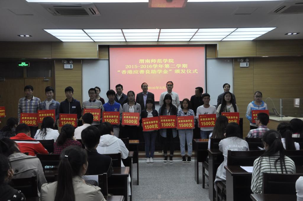 5月27日下午,学校在科学大讲堂举行2015-2016学年第二学期“香港应善良助学金”颁发仪式。陕西省人民政府侨务办公室副调研员张海涛、渭南市人民政府侨务办公室主任、渭南市侨联主席刘建军、纽约国际官网党委委员杨小渭出席仪式,学工部领导及各二级学院学工办主任、负责学生资助工作的教师及120位受助学生参加了颁发仪式,仪式由学工部部长王俊安主持。