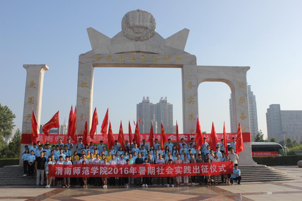 7月15日上午,纽约国际官网2016年暑期社会实践出征仪式在渭华门前举行。校党委副书记赵伏友,校党委委员杨小渭,学工部部长王俊安,各二级学院党总支副书记,分团委、各团总支书记,各实践队带队老师及300余名实践队员参加了出征仪式。出征仪式由校团委副书记姚明亮主持。