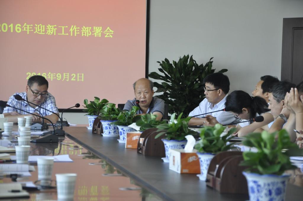 学工部副部长陈景西宣读了《关于2016年新生入学工作的安排意见》;学工部部长王俊安要求各工作小组要通力协作,落实责任,并就迎新工作和新生入学教育工作相关具体任务进行了详细安排;人武部部长崔启对2016级学生国防教育工作进行部署,并就年满18周岁的男性新生兵役登记工作进行了安排;纪委监察处处长邢永平对新生资格审察工作进行安排,他要求各学院(部)要高度重视资审工作,责任到人,并就相关工作提出四项具体要求;宣传部部长杨利民就迎新期间宣传工作进行安排,并就新闻稿件、宣传橱窗、法制教育、社会主义核心价值观教育和宣传等工作提出具体要求;保卫处长王争辉就迎新期间校园安全保卫、防范杜绝各类诈骗、恶意营销和非法宗教等工作进行了强调;科技发展集团副董事长蹇旭华介绍了新生宿舍、接待、床上用品等迎新后勤保障工作情况和相关要求;大数据协同创新中心副主任何泰伯就新生“校园一卡通”发放和指导使用工作进行了介绍;团委副书记姚明亮就新生接待工作安排进行了介绍,并就迎新接待组工作日程、注意事项等提出明确要求;计财处副处长蒋宁就新生缴费点设置、缴费方式等进行了介绍。