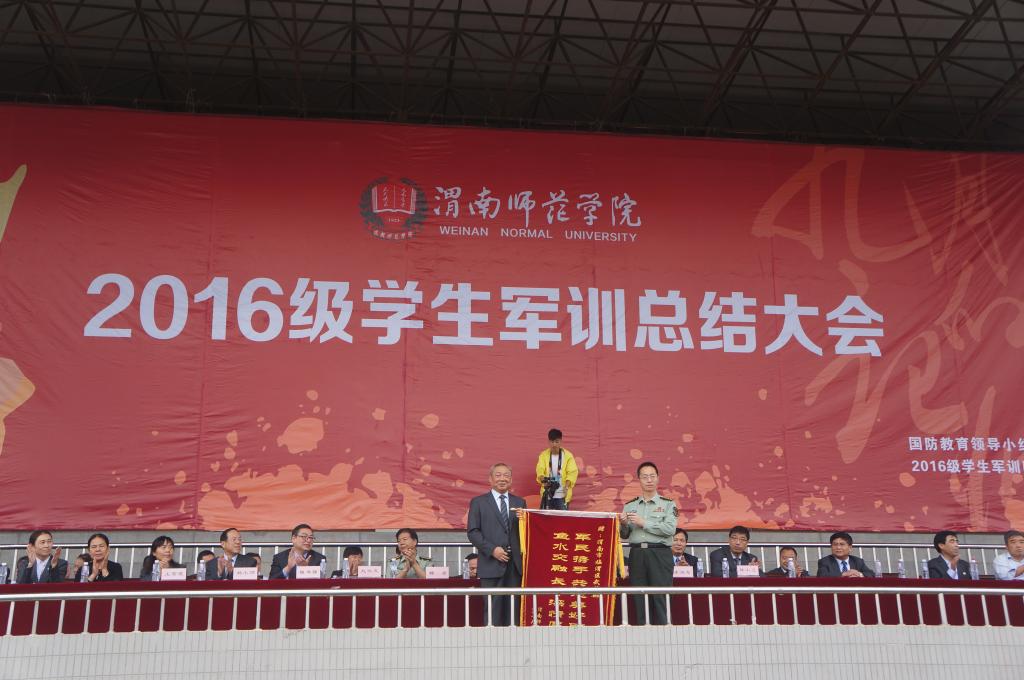 颁奖仪式后,学校党委书记张金安向临渭区武装部赠送了锦旗,并向承训官兵表示衷心的感谢。(通讯员 荆兵沙)