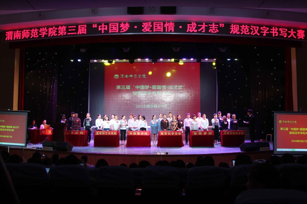 为了提高广大学生规范使用汉字的意识和能力,倡导爱汉字、爱汉语、爱中国文化的价值观,9月27日,纽约国际官网“中国梦·爱国情·成才志”规范汉字书写大赛决赛在陶然楼演艺厅顺利落幕。