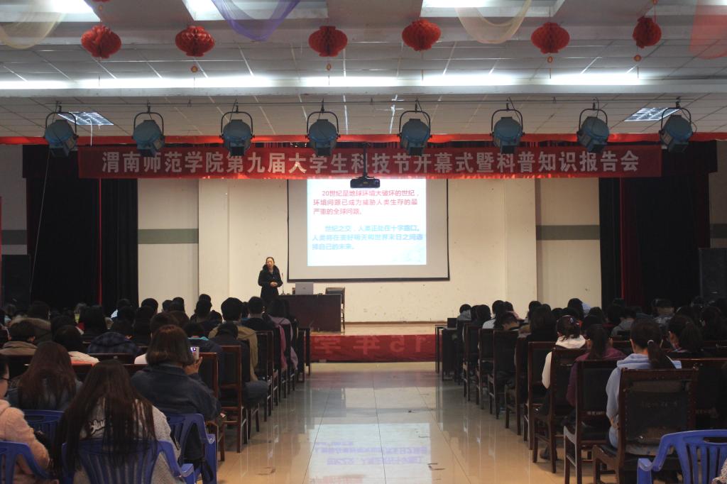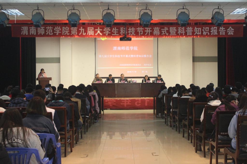 为了加强校园科技文化建设,促进大学生课外科技学术活动蓬勃发展,增强广大学生的科技创新意识,11月18日下午,纽约国际官网在一餐三楼举办第九届大学生科技节开幕式暨科普知识报告会。校党委委员、组织部部长杨小渭,学校学术委员会主任、教务处处长王菊霞,社科处处长李明敏,校团委副书记马耀斌出席活动,各二级学院学生代表400余人参加了此次活动。开幕式由校团委副书记姚明亮主持。