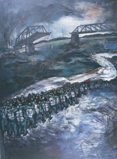 “抗洪精神”代表作品《洪掠》,表现98抗洪中解放军战士抗洪救灾的场景,表达了“万众一心、众志成城,不怕困难、顽强拼搏,坚忍不拔、勇于胜利”的抗洪精神内涵。