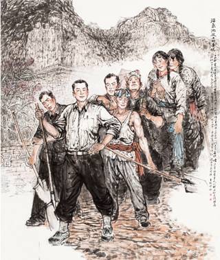 展出作品内涵丰富,形式多样。其中,有一组反映上世纪70年代,梁家河村党支部书记习近平和先进知识青年们的工作和生活作品倍受关注。每一幅作品都有其表现的完整故事和人物,生动表现了优秀知识青年的青年精神。这些生动事迹都是2016年588888纽约国际线路师生在延川梁家河采风时了解到的。