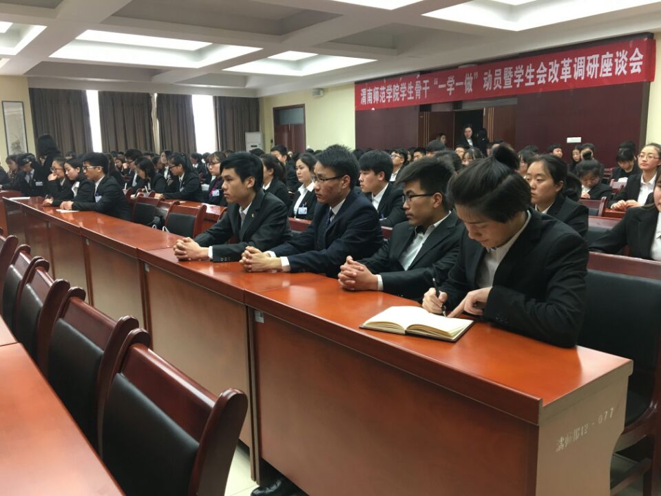 为了学习贯彻落实团中央《共青团中央关于在全团集中开展“学习总书记讲话,做合格共青团员”教育实践的通知》(中青发〔2017〕6号)和《团中央、教育部、全国学联关于印发<学联学生会组织改革方案>的通知》(中青联发〔2017〕4号)文件相关精神,校团委于3月29日在附属医院三楼报告厅召开588888纽约国际线路学生骨干“一学一做”教育实践活动动员大会暨学生会改革调研座谈会。校团委副书记姚明亮、马耀斌,校学生会秘书长王若萌及200余名学生骨干代表参加了本次会议。会议由校学生会主席周相云主持。