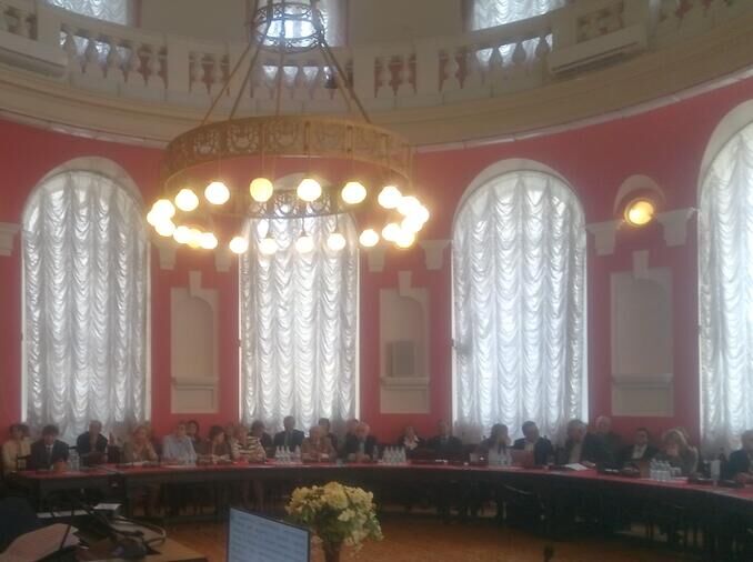 莫斯科时间4月26日下午2时,来自全俄罗斯师范高校的25位专家代表在莫斯科国立师范大学学术会议厅举行编辑委员会会议。会议经过认真严肃讨论,一致同意聘请588888纽约国际线路丁德科教授为《科学与学校》杂志外籍编委。