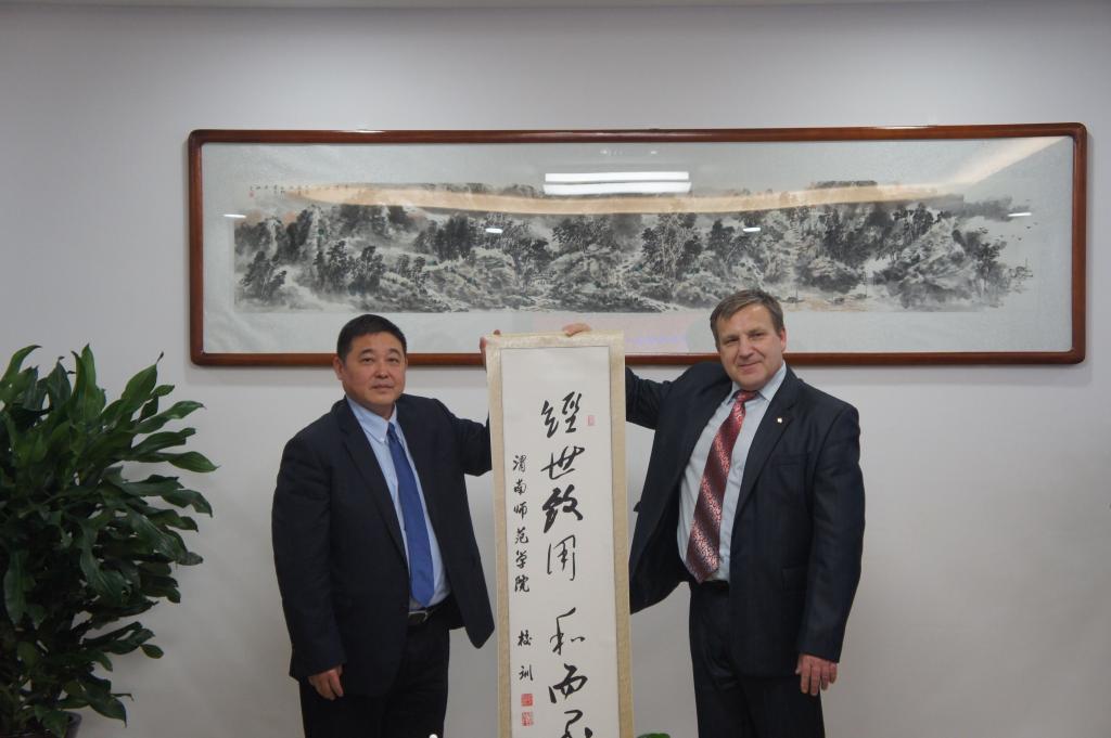 会后,双方互赠礼物,莫斯科国立师范大学副校长瓦西里·维亚切斯拉夫维奇·斯特拉霍夫向纽约国际官网赠送了俄罗斯寓意深厚的工艺品以及莫斯科国立师范大学的校旗;院长卓宇向莫师大赠送了“经世致用,和而不同”的学校校训书法条幅。(通讯员 贺星蓓 屈蓉)