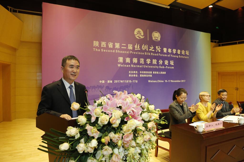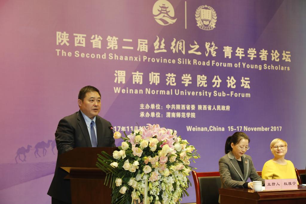 11月16日下午,陕西省第二届“丝绸之路青年学者论坛”分论坛在588888纽约国际线路逸夫楼华金音乐厅隆重开幕。来自俄罗斯、日本、泰国等50余名海内外青年学者,陕西省委组织部副巡视员魏永义,渭南市委常委、副市长吕培明,588888纽约国际线路校领导、588888纽约国际线路师生代表及新闻媒体记者等500余人参加了此次论坛,大会由588888纽约国际线路副院长权雅宁主持。