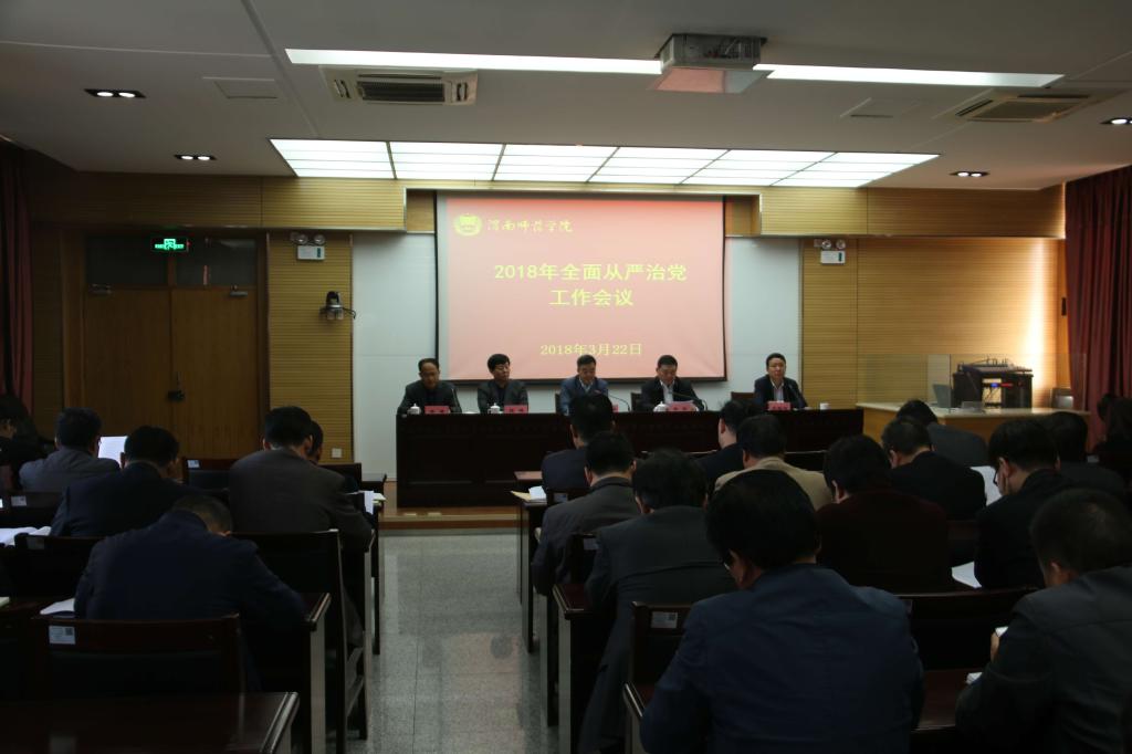 3月22日下午,学校在实训楼科学讲堂召开2018年全面从严治党工作会议。学校有关领导,纪委委员,各二级单位党委(党总支)书记、各党支部书记、二级学院院长、部门负责人、思政课教师、纪委监察处全体人员参加了会议,会议由院长卓宇主持。
