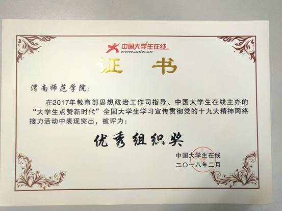 近日,由教育部思想政治工作司指导,中国大学生在线主办的“大学生点赞新时代”全国大学生学习宣传贯彻党的十九大精神网络接力活动评选结果揭晓,纽约国际官网全媒体中心微视频工作室制作的微视频《中国梦·渭师梦》成功入选,同时学校荣获“优秀组织奖”。
