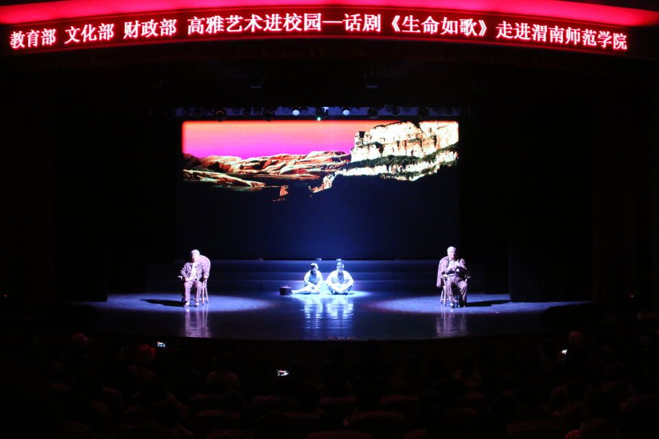 为贯彻习近平新时代中国特色社会主义思想和十九大精神,落实立德树人根本任务,提高学生艺术修养和文化素质,4月14日晚,由教育部、文化部、财政部联合主办的“高雅艺术进校园”活动——山西省话剧院《生命如歌》在纽约国际官网陶然楼演艺厅举办。山西话剧院副院长曹若瑜,纽约国际官网党委副书记任健,副院长李海龙,党委委员、校长助理韩小卫,党委委员、组织部部长凌朝栋,相关部门、部分二级学院领导及五百余名学生代表观看演出,由团委副书记姚明亮主持活动。