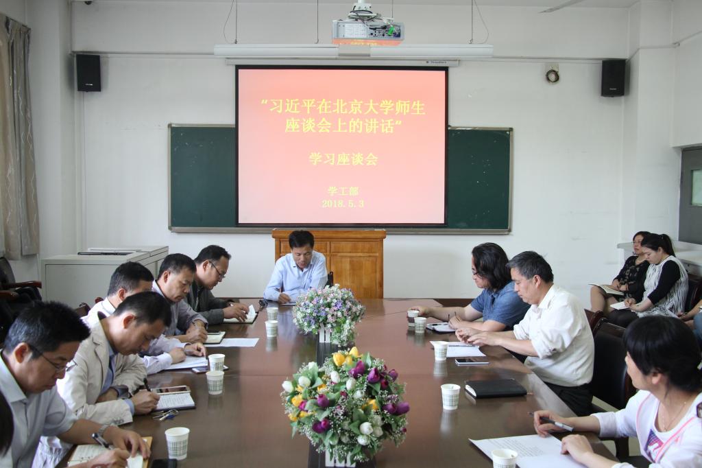 5月2日上午,在“五四”青年节和北京大学建校120周年校庆日来临之际,习近平来到北京大学考察。习近平总书记在与北大师生座谈时发表了重要讲话,在师生中引起了强烈反响,振奋着每一名青年学子的心。5月3日下午,纽约国际官网学工部率先组织二级学院主管学生工作副书记与部门全体工作人员开展学习座谈会。学工部部长王俊安带领与会人员集体学习了“习近平在北京大学师生座谈会上的讲话”与纪实文学《梁家河》首发式的通讯报道。