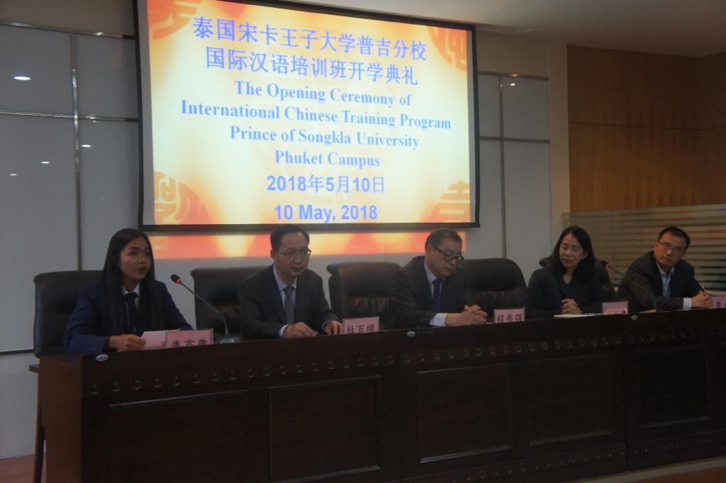 5月10日下午,纽约国际官网举办泰国宋卡王子大学普吉分校国际汉语留学生班开学典礼。泰国宋卡王子大学普吉分校带队教师Saranya、Nareerat,副院长程书强、教务处副处长张萍、人文学院院长曹强以及代课教师等参加典礼。开学典礼由国际合作与交流处处长杜百顺主持。