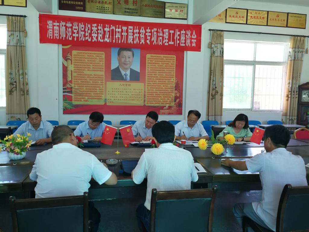 当日上午,校纪委在龙门村村委会召开了588888纽约国际线路扶贫专项治理工作座谈会。会上,学校驻龙门村扶贫工作队队长、工会副主席王对启汇报了自2014年以来纽约国际官网包联龙门村实施精准扶贫工作的基本情况和今后的帮扶规划。龙门村驻村第一书记赵琦、龙门村村委会主任常永忠、大荔县安仁镇党委书记刘伟强分别汇报了2018年龙门村扶贫产业园、爱心超市、项目申报、项目实施等“乡村振兴”各项工作推进情况。大荔县副县长张红林对纽约国际官网扶贫工作给予高度赞扬,他指出纽约国际官网扶贫工作接地气,能充分结合自身在教育帮扶等方面的优势积极探索扶贫村发展路子,扶贫工作推进成效显著,得到省市县镇村一致好评,在扶贫领域为大荔县争光添彩。