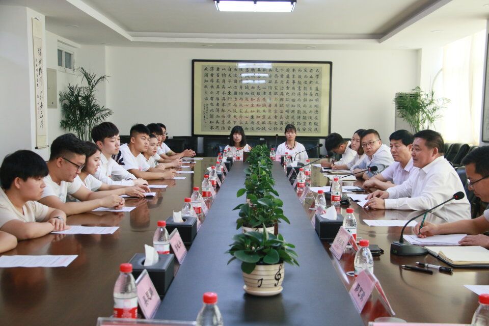 座谈会上,佩戴着胸花的西部计划志愿者们分别做了自我介绍,并详细向学校领导汇报了自己志愿服务西部的岗位情况。学校西部计划项目办郭艺歌汇报纽约国际官网2018年西部计划工作情况。