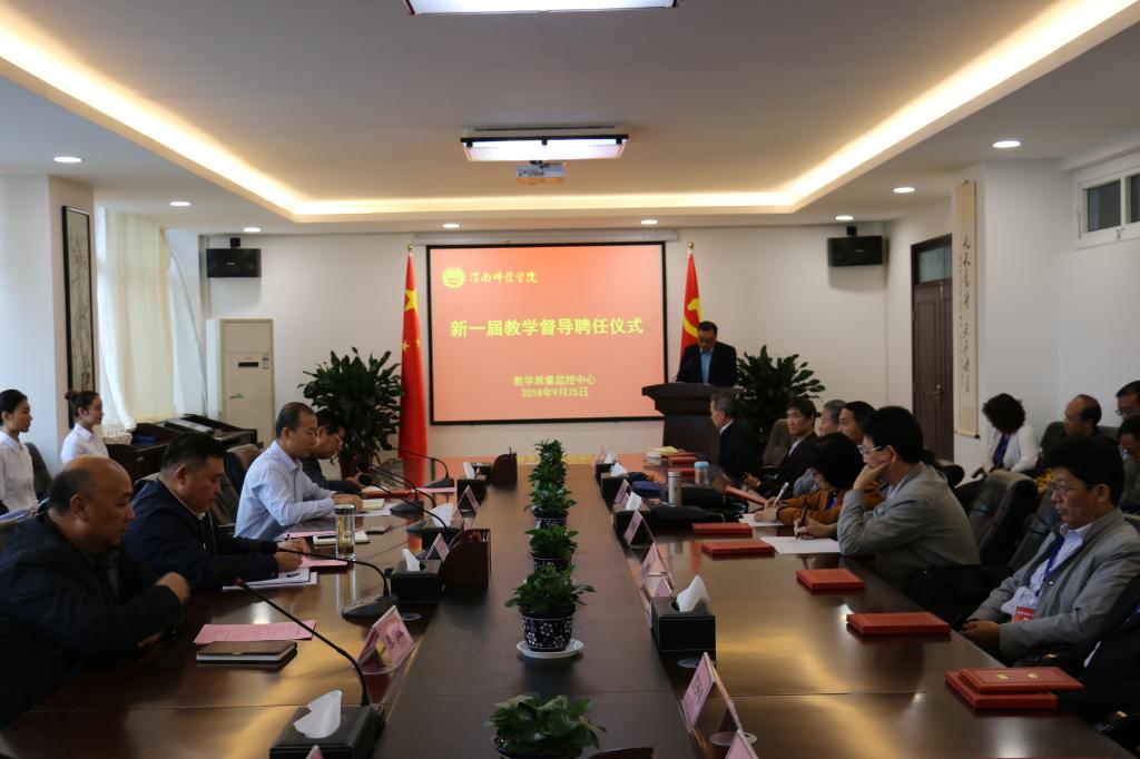 9月25日,学校在厚德楼4楼第二会议室举行新一届教学督导聘任仪式。院长卓宇,副院长程书强,二级学院书记、院长、教学副院长和教学质量监控中心、评估办、教务处等部门负责人参会。会议由评估办常务副主任孙宏恩主持。