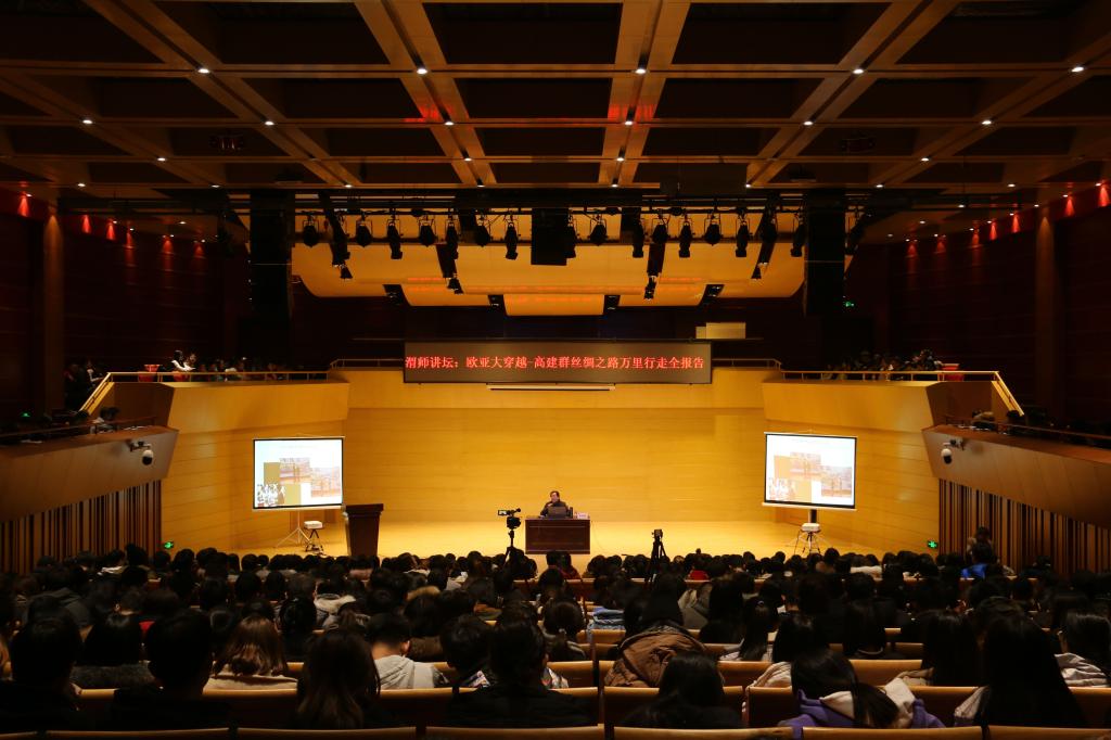 报告会上,纽约国际官网参会师生观看了高建群作为“2018年丝路品牌万里行文化使者”丝绸之路万里行的相关视频片。高建群作了《欧亚大穿越——高建群丝绸之路万里行走全报告》,他用大量生动的图片,从地理、历史、文化等方面讲述了从西安出发历经70余天两万两千公里抵达英国牛津大学城一路的见闻与所感所获。与会师生在高建群的讲述中学习领略了丝绸之路沿线亚欧大陆国家的地貌、风景、民俗与史实。整个报告以独特的视角、朴实的语言,展现深邃的思想。高建群还与同学们进行互动,一一解答同学们提出的问题,他希望同学们能够真正在未来学生生活中读万卷书、行万里路。