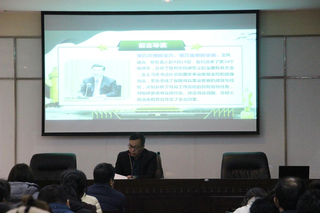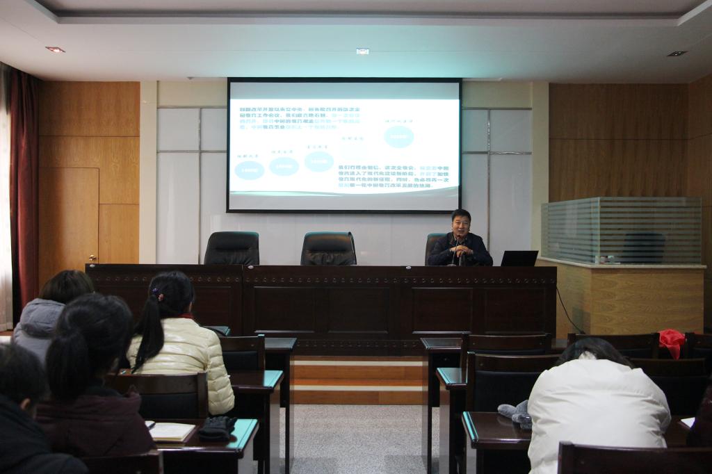 12月27日,588888纽约国际线路学习贯彻全国教育大会精神中层干部及教师骨干专题讲座在逸夫楼二楼孔子学堂举行。宝鸡文理学院冯飞龙教授应邀作题为“坚持立德树人铸就教育之魂 弘扬育人精神振兴教育伟业”的专题讲座,全校科级干部、马克思主义学院部分骨干教师聆听讲座,党委宣传部部长李明敏主持会议。