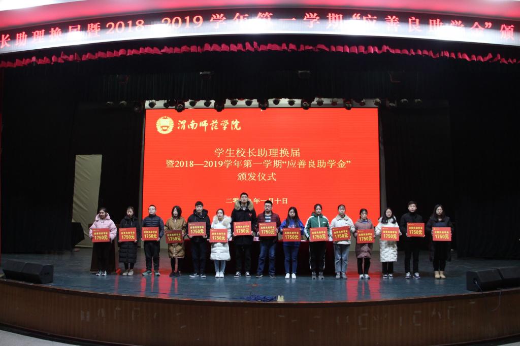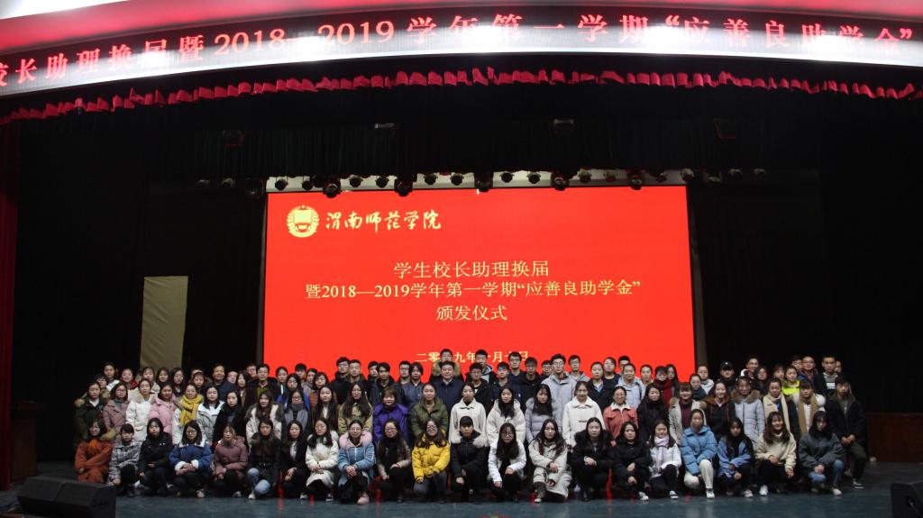 1月10日上午,学校在陶然楼演艺厅举行了2018-2019学年第一学期“香港应善良助学金”颁发仪式。渭南市人民政府侨务办公室秘书长岳森等一行三人,纽约国际官网校长卓宇,副校长王菊霞,学工部部长王俊安,各二级学院副书记,学工办主任,负责学生资助工作的辅导员及120位受助学生、学生代表等参加了颁发仪式。仪式由学工部副部长陈景西主持。