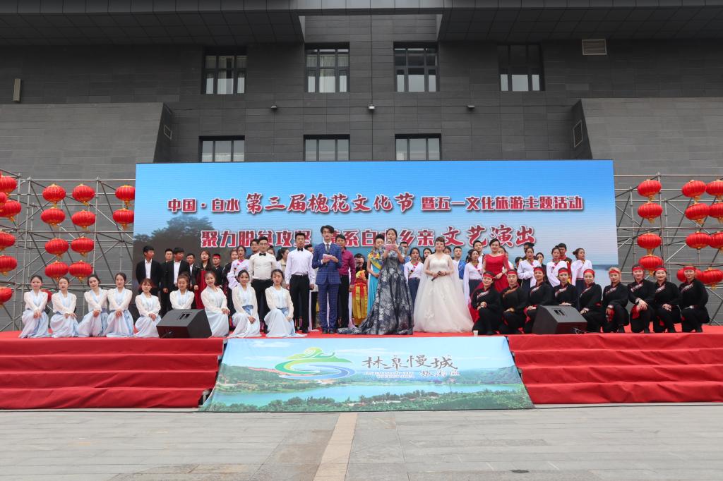演出在喧天锣鼓声中拉开了帷幕,随后,歌颂林皋湖畔万亩槐花林美景的民歌《槐花海》精彩上演:竹笛合奏《灞桥柳》《扬鞭催马运粮忙》悠扬飘荡、绵延回响,独唱《忠孝两全》音质醇厚、荡气回肠,舞蹈《关雎》、《黑骏马》行云流水、美轮美奂,二胡重奏《陕北民歌联奏》高亢嘹亮、铿锵有力,秦腔《荒郊义救》再现了秦东地方优秀传统文化历久弥新的魅力,文艺演出在全体演职人员《我和我的祖国》的歌声中完美落下帷幕。历时2个小时精彩演出涵盖了音乐、舞蹈、戏剧、魔术、小品、器乐多种艺术表现形式,为白水人民奉上了一场精彩的视听盛宴,尽管演出当天天气寒冷,但现场演员观众热情高涨,精彩的演出赢得了观众们的阵阵热烈掌声,演出结束后,当地群众仍意犹未尽,争相与演员交谈,久久不愿散去。
