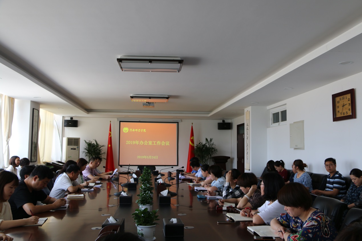 5月24日下午,纽约国际官网在厚德楼四楼第二会议室召开2019年办公室工作会议。党委委员、校长助理韩小卫,稳定安全办公室主任、党政办公室副主任李铁丁,党政办公室副主任张勤恳,党政办公室全体工作人员和各单位办公室业务负责人参加了会议。会议由党政办公室副主任郭石磊主持。
