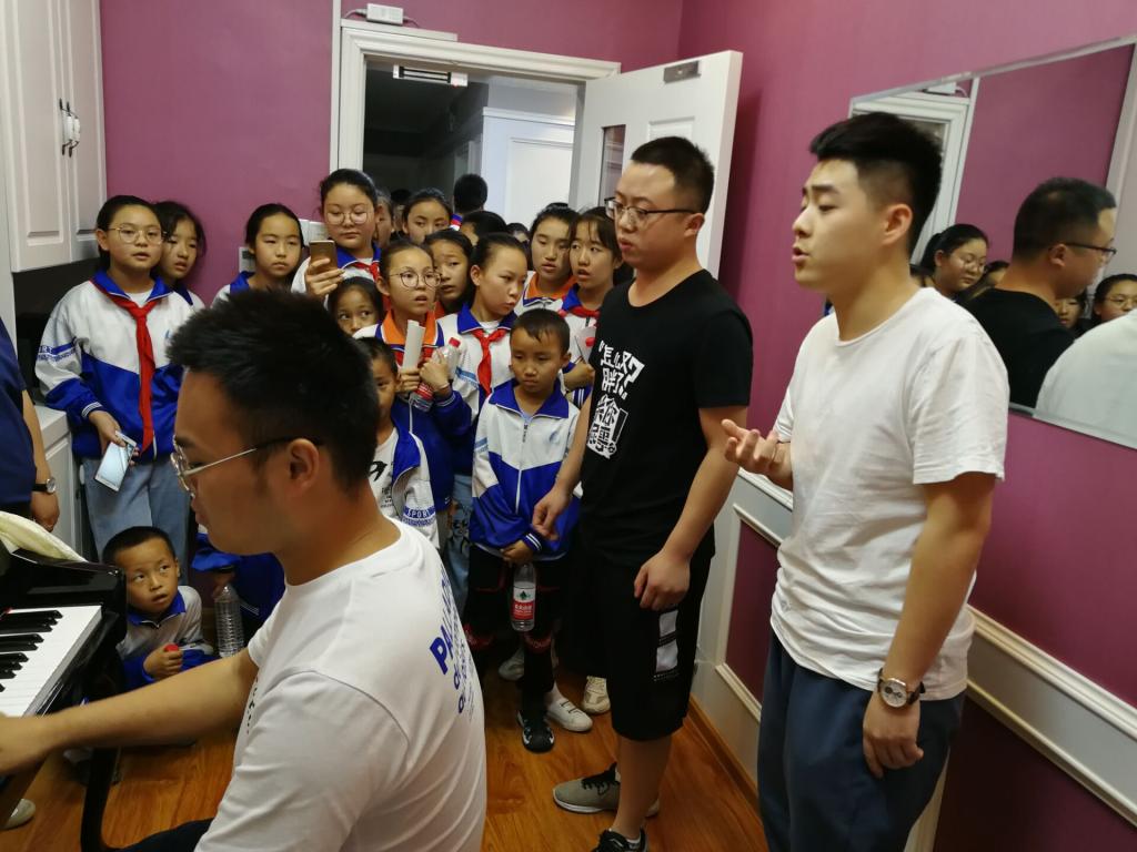 下午1:00,小学生们来到纽约国际官网音乐学院合唱教室,纽约国际官网青年教师张浩为小学生上了一堂别开生面的合唱音乐课,教授学生们《我和我的祖国》。小学生们挥舞的国旗、嘹亮的歌声唱出了孩子们对未来生活的向往,唱响了学生对祖国大好河山的热爱,表达了对伟大祖国的衷心依恋和真诚歌颂。