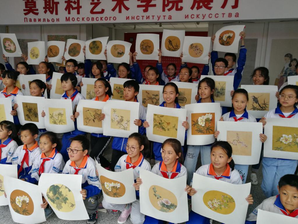 志愿者带领小学生参观纽约国际官网美术学院毕业生作品展,美术学院师生赠予每位学生一副美术作品,四年级建档立卡学生贺思雨收到作品后激动地说:“我长大也要学习画画,也要像哥哥姐姐们一样办画展”。参观完画展后,小学生们参观了纽约国际官网合作办学机构莫斯科艺术学院,在钢琴教室大学生为小学生们演奏了《拉德斯基进行曲》,俄罗斯外教伊丽娜·纳格莱特为小学生们演唱咏叹调《意大利女郎在阿尔及尔》和俄罗斯儿童歌曲《蓝色马车》。七年级学生刘欢欢说:“这是我第一次现场听外籍老师唱歌,非常感谢你们提供给我这样一次机会”。