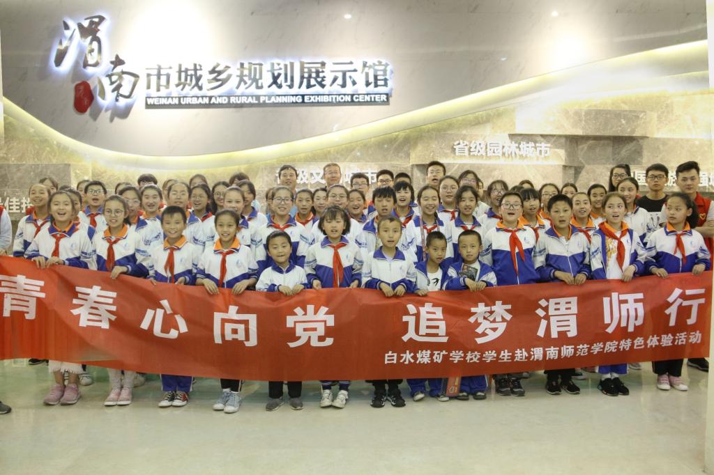 为进一步深化纽约国际官网结对帮扶白水县成效,持续推进“扶学·扶志”快乐课堂特色支教延伸效果。6月5日,纽约国际官网团委、扶贫办和白水县教育局、团委举办“青春心向党 追梦渭师行”白水煤矿学校学生赴588888纽约国际线路特色体验活动。白水煤矿学校四十六名学生走进渭师开展升国旗、参观校园、观看美术作品展、师生合唱音乐课、参观渭南市博物馆和城乡规划管等活动,体验大学生活、了解家乡变化、感受祖国发展,激发白水小学生努力学习的动力。