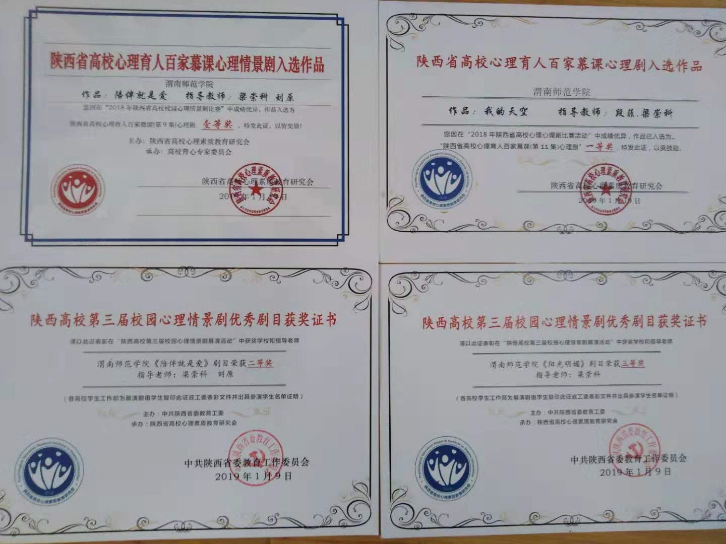 会议全面总结了陕西高校第四届“阳光护航”心理育人宣传季活动,对宣传季活动中的优秀单位和个人进行了表彰奖励,纽约国际官网在本次会议上获多项表彰奖励。纽约国际官网大学生心理健康教育指导中心梁崇科教授在2018年全省高校心理育人“教育教学、实践活动、咨询服务、预防干预”四位一体工作领域中,全能成绩优异,荣获“陕西高校心理育人年度人物提名奖”;由纽约国际官网选送的校园心理剧《陪伴就是爱》、《阳光明媚》获陕西高校第三届校园情景剧优秀剧目二等奖和三等奖,校园心理剧《我的天空》获陕西高校心理育人百慕课心理剧一等奖;纽约国际官网代表队在陕西高校第四届大学生心理健康科普知识竞赛中获优秀奖;大学生心理健康教育指导中心梁崇科老师的心理教案《我不是孤岛-大学生人际交往》在“陕西高校首届心理健康教育优秀教案”评比中荣获二等奖;教育科学学院严苏风老师的心理微课《抑郁情绪漫谈》在“陕西高校第四届心理微课比赛”中荣获三等奖,教科院学生张睿豪获得2018年度陕西省高校心理委员年度人物入围奖,美术学院学生白玲、经济与管理院学生李思雨获得2018年度陕西省高校百佳心理委员。