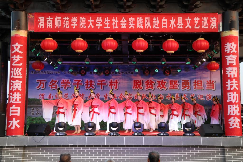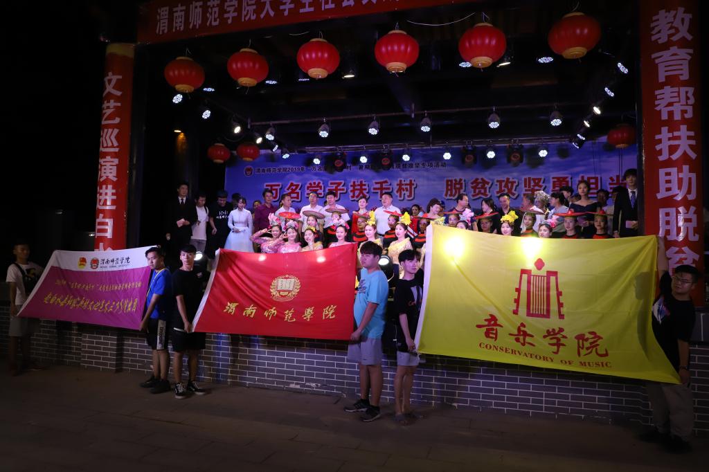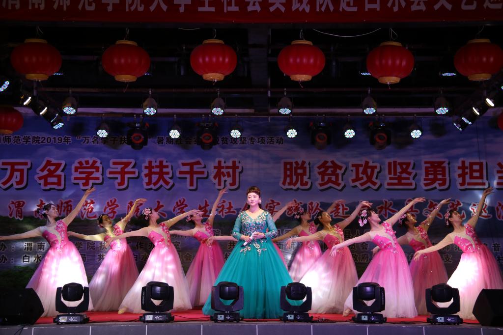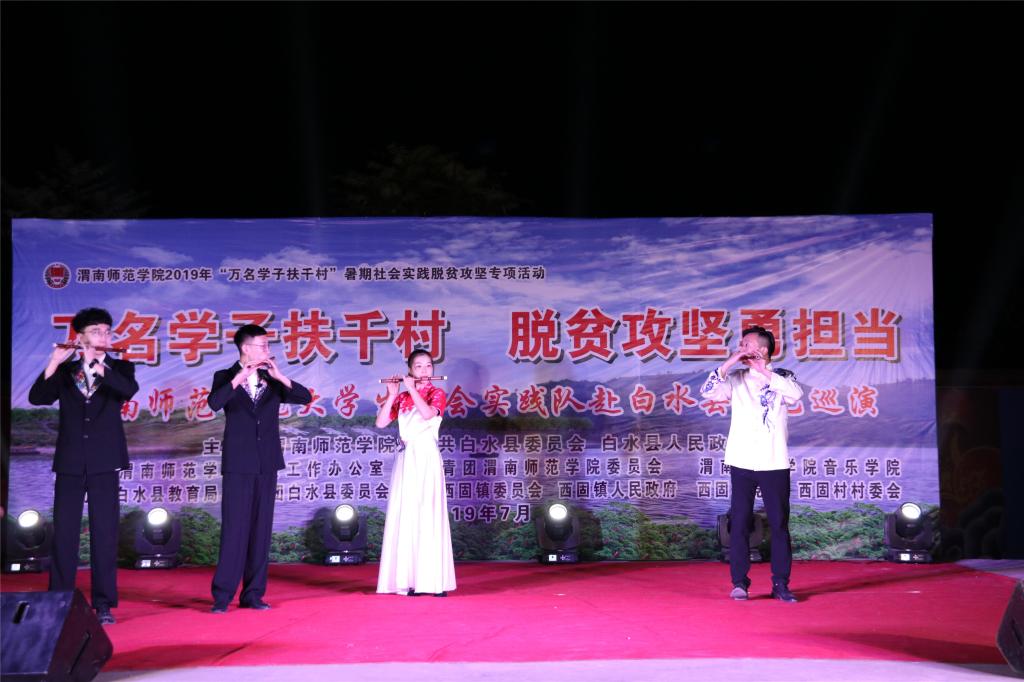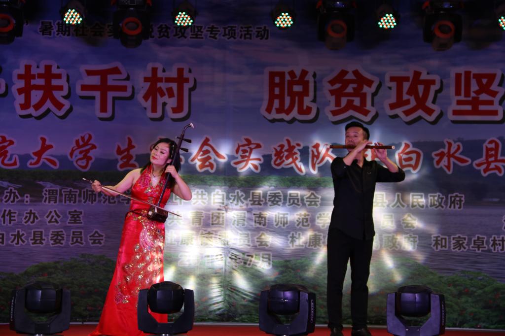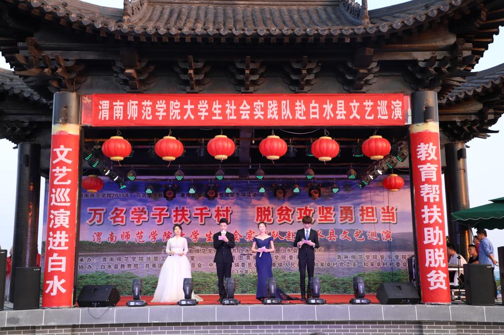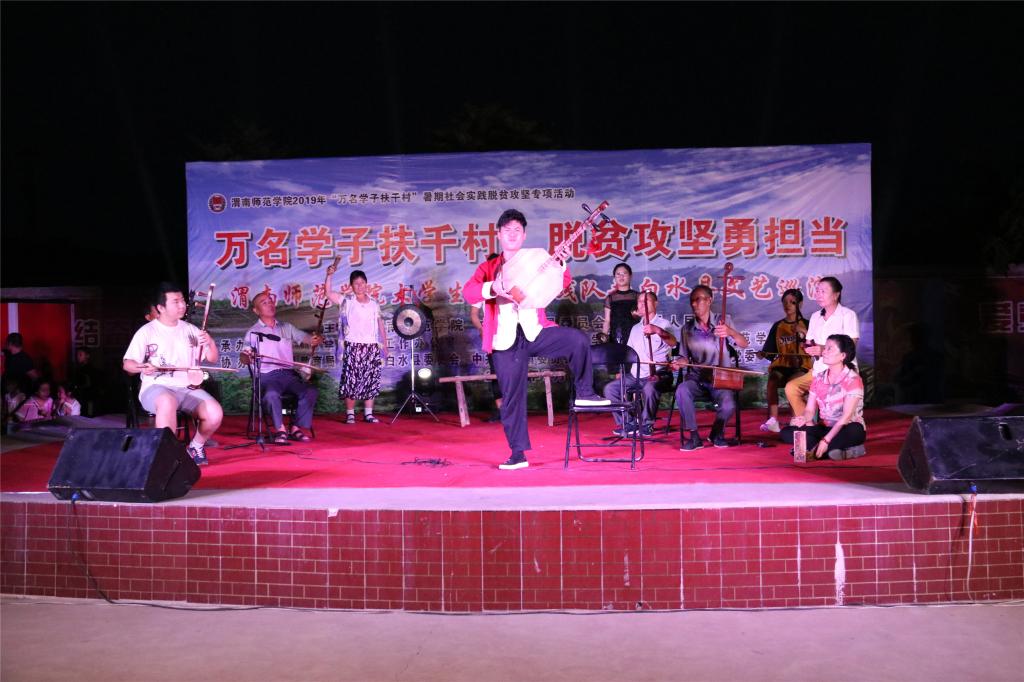 脱贫攻坚传真情,勤劳致富奔小康。7月12日晚和13日晚,“万名学子扶千村脱贫攻坚勇担当”588888纽约国际线路大学生社会实践队赴白水县文艺巡演分别在西固镇西固村和杜康镇和家卓村上演。588888纽约国际线路赴白水县西固村文化艺术三下乡演出团和赴白水县和家卓村文化艺术三下乡演出团师生们为当地群众奉献了一场丰盛的文化大餐,为两地父老乡亲在脱贫致富奔小康的道路上鼓劲、加油!