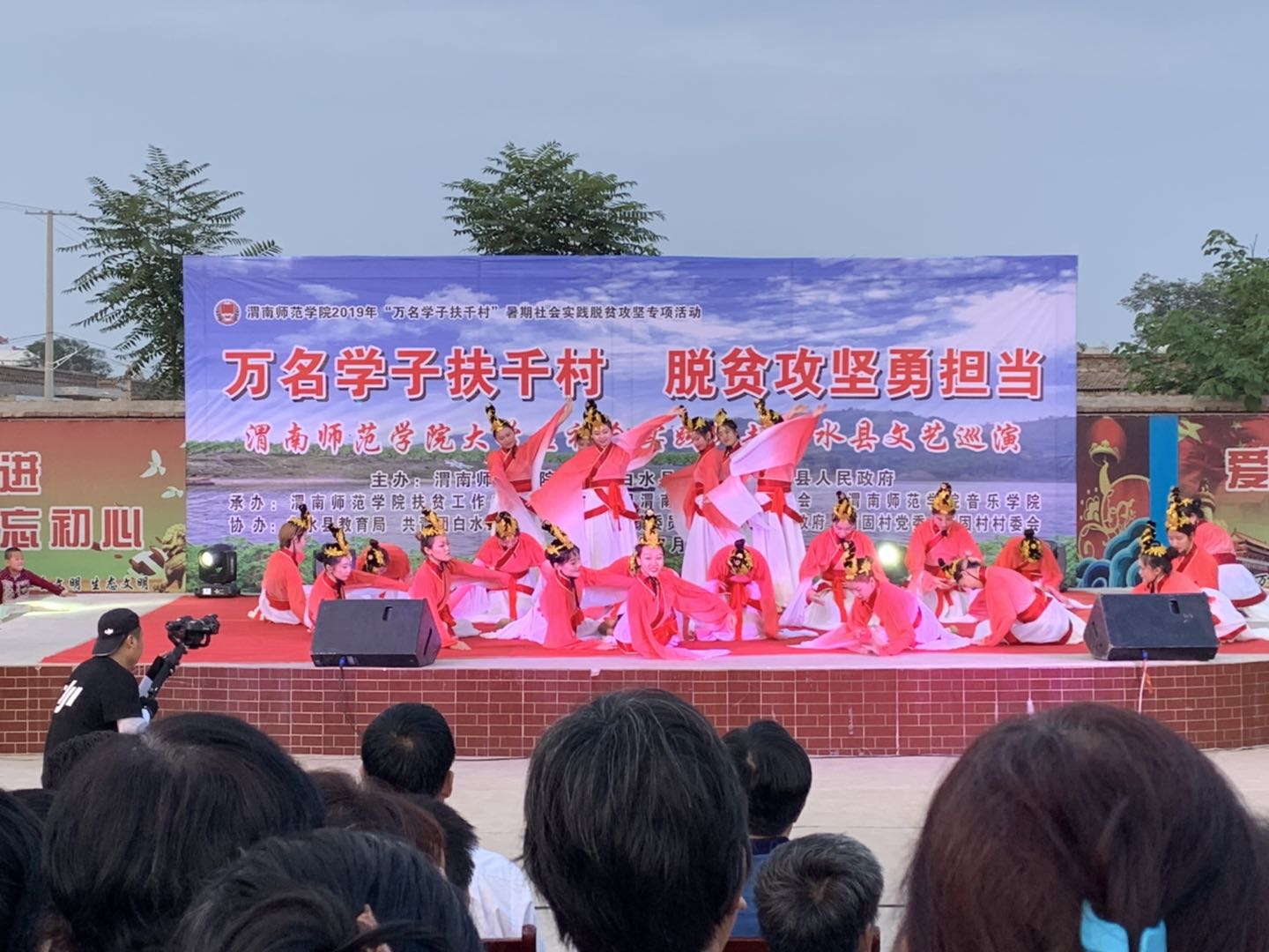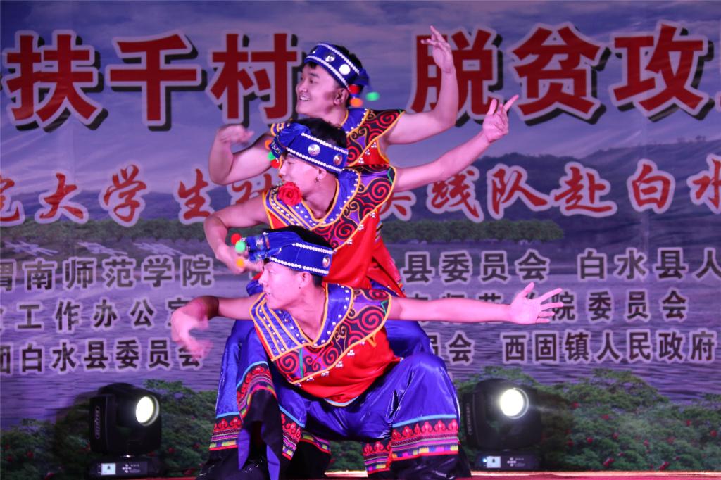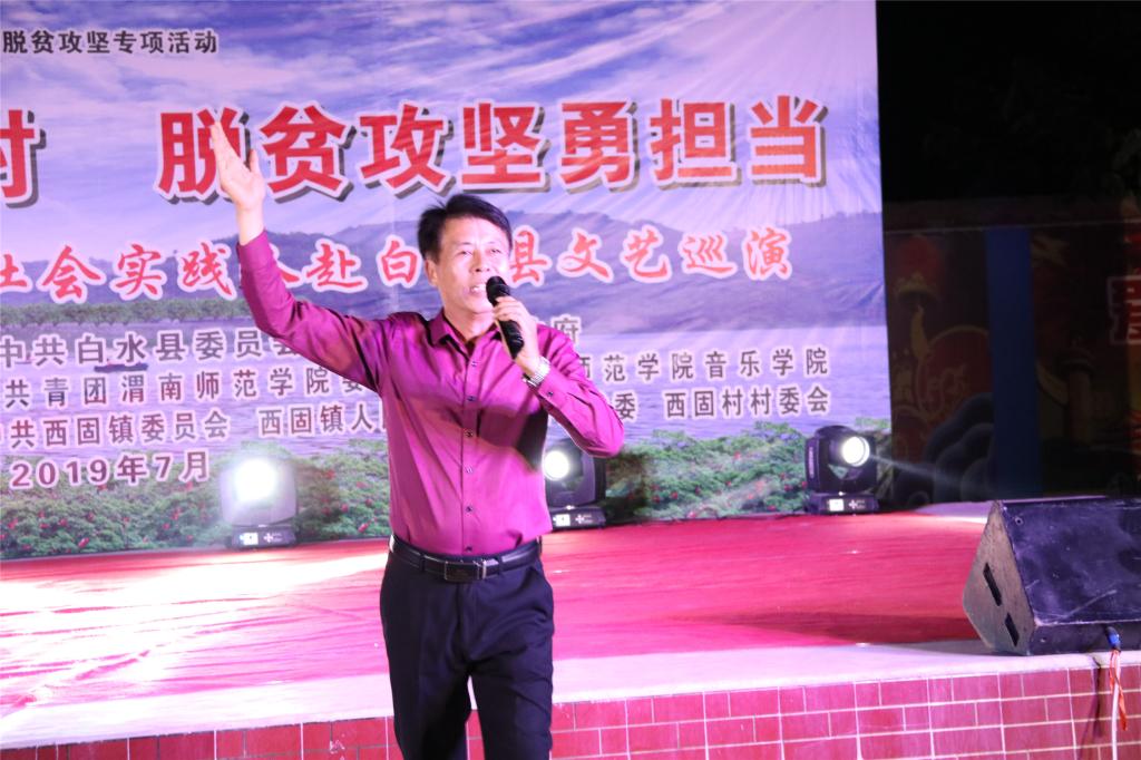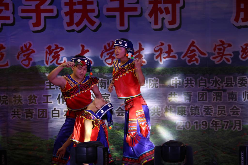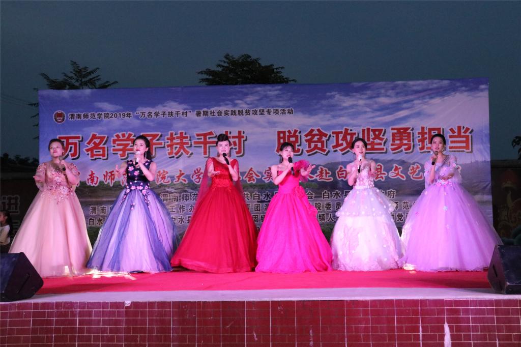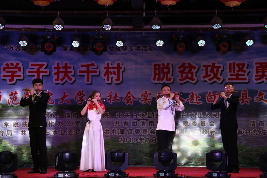 脱贫攻坚传真情,勤劳致富奔小康。7月12日晚和13日晚,“万名学子扶千村脱贫攻坚勇担当”588888纽约国际线路大学生社会实践队赴白水县文艺巡演分别在西固镇西固村和杜康镇和家卓村上演。588888纽约国际线路赴白水县西固村文化艺术三下乡演出团和赴白水县和家卓村文化艺术三下乡演出团师生们为当地群众奉献了一场丰盛的文化大餐,为两地父老乡亲在脱贫致富奔小康的道路上鼓劲、加油!