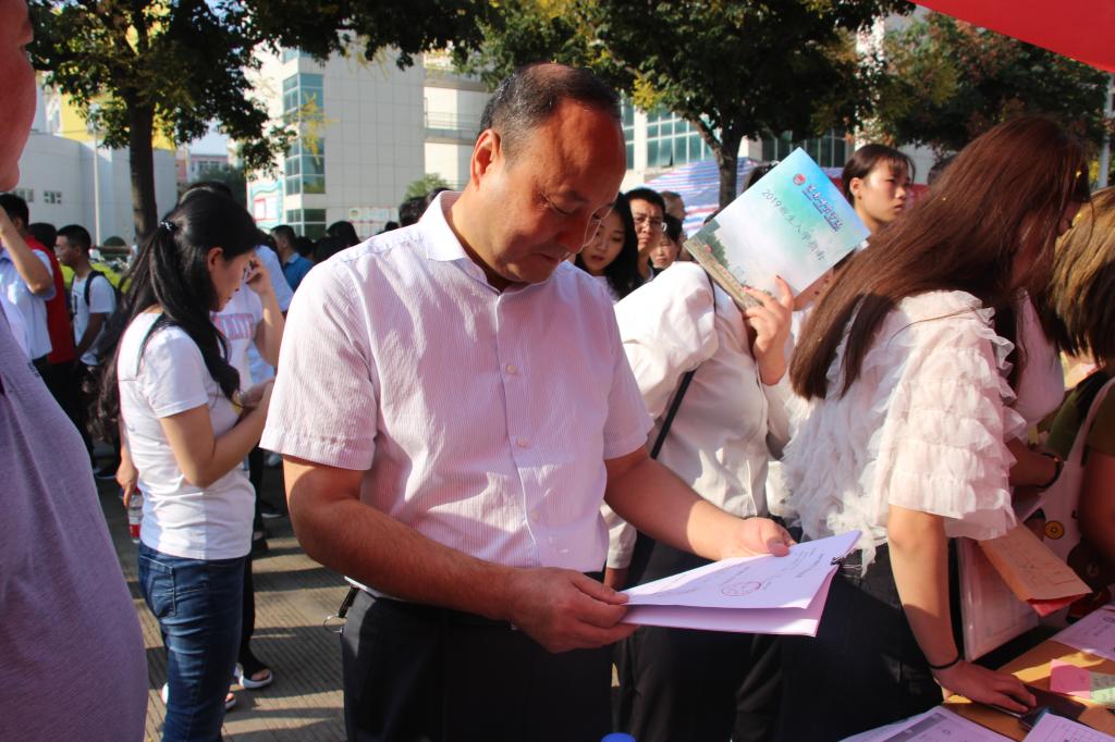 迎新当天,党委书记卓宇、校长赵曼等学校主要领导带领党政办、教务处、学工部(人武部)、后勤服务中心、团委等主要部门负责人深入朝阳、西岳两个校区检查指导新生入学报到工作,并亲切慰问迎新工作人员和学生志愿者们。了解各学院新生报到的进展情况;并与新生和家长亲切交谈,征询新生家长对学校迎新工作和事业发展的意见和建议;勉励新生们刻苦学习,不负韶华,珍惜宝贵的大学时光,求学问,炼能力,长才干。