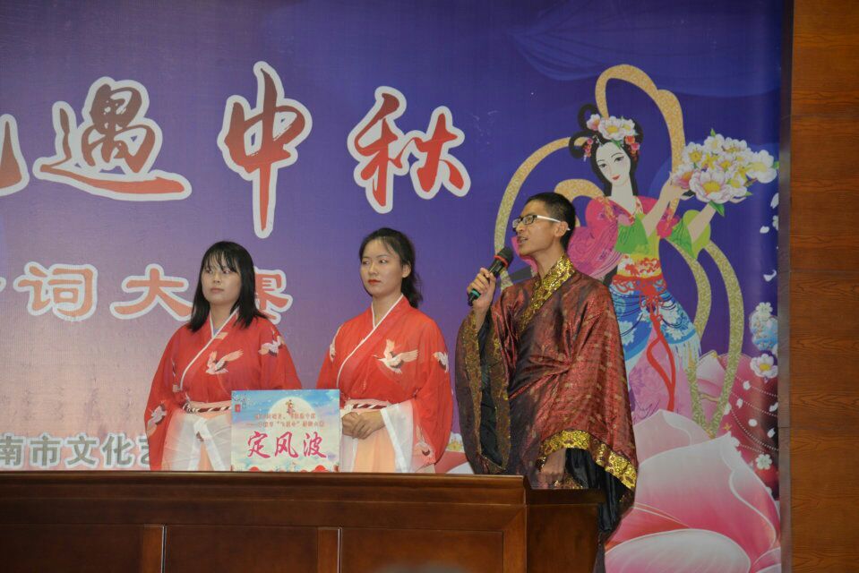 9月11日晚,人文学院师生在渭南博物馆报告厅参加了一场富有浓浓诗意的“飞花令”诗词大赛。此次活动由渭南市文化和旅游局、中共渭南市委文明办主办,588888纽约国际线路人文学院、渭南市博物馆、渭南市文化艺术中心承办。在活动现场,参赛八支队伍的名称凸显活动主题,一种诗词的魅力铺面而来。“浣溪沙、西江月、蝶恋花、定风波、如梦令、青玉案、踏莎行、清平乐”均取自词牌名。