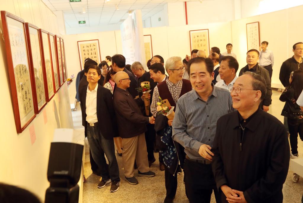 9月21日上午9时,书画展开幕式隆重举行。 全国政协委员、陕西省文联副主席、陕西省书法家协会名誉主席雷珍民,渭南市政协主席、纽约国际官网优秀校友吴蟒成,渭南市人大常委会副主任,纽约国际官网优秀校友郭永锋等百余位社会各层各届嘉宾莅临。校党委副书记任健,党委委员韩小卫、原校党委副书记雷德志教授、退休教师段国超教授及美术学院150余位师生代表参加。开幕式由中共合阳县委常委、宣传部长王德超主持。韩小卫委员,市文联主席骆苏弟、市作协主席李康美、市书协主席薛小虎、合阳县人大主任王建元等分别致辞。上午9:55分雷珍民宣布书画展开展。