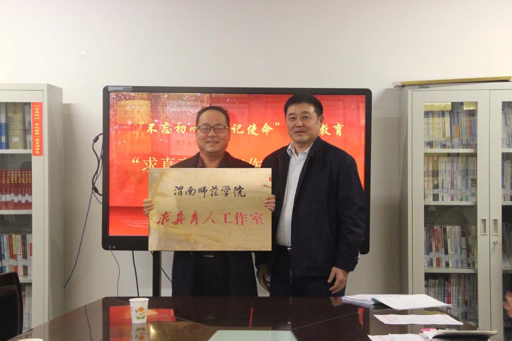 揭牌仪式上,宣传部部长李明敏首先宣读了学校《关于同意成立“求真育人”工作室的批复》;党委书记卓宇为“求真育人”工作室授牌。