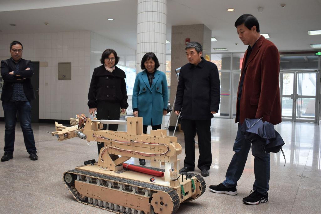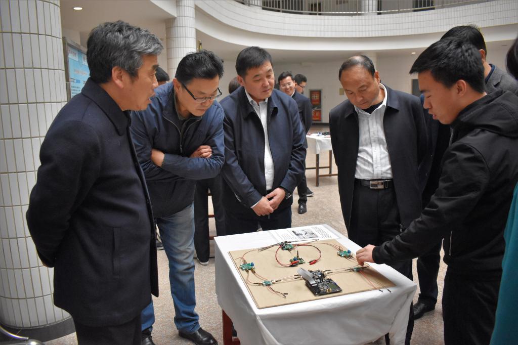 11月6日下午,学校党委书记卓宇,校长赵曼,党委副书记任健,副校长王菊霞、韩小卫参观了物理与电气工程学院举办的“一院一品”首届大学生科技创新实践作品展,一同参观的还有宣传部部长李明敏、规划处处长姬晨、教务处处长孙宏恩、团委书记姚明亮、学校党政办副主任张勤恳一行。