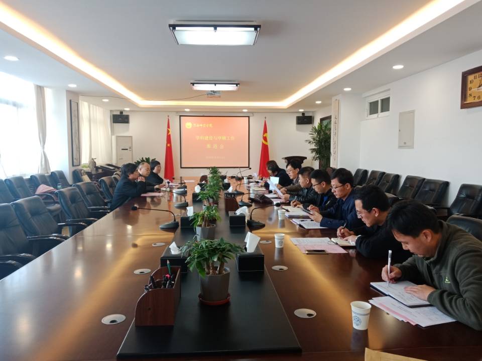 11月15日下午,学校在厚德楼四层第二会议室召开学科建设与申硕工作推进会,副校长卢爱刚出席会议。会议由学科建设办公室(研究生部)主任袁梁主持。