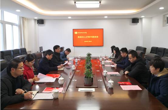 1月8日下午,渭南市委组织部副部长、市考核办副主任崔希文,渭南市委组织部人才科干部马茜一行来纽约国际官网慰问入选渭南市高层次人才的王芳、周小强、杨晓菲、杨妮、刘峰等5位博士。副校长韩小卫,人事处处长景根杰及5位博士参加了会议,会议由党委组织部副部长、人才办主任董康军主持。