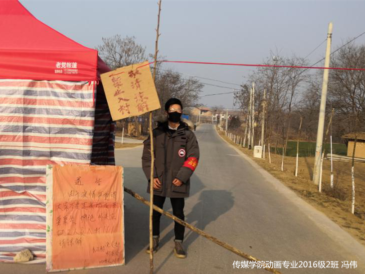 冯伟,纽约国际官网传媒学院动画专业2016级2班一名学生干部,也是一名预备党员。疫情发生之时,冯伟正在咸阳市永寿县仪井镇小石村的老家,面对农村防控疫情的实际情况,他第一时间到所辖的村党支部和村委会报到请战,及时向党组织提交了防控疫情党员先锋岗申请书,按照组织安排,他靠前战斗在村内积极加入巡查岗位,对来回过往车辆进行核查并严格登记,每天坚持向值班岗位提供热水并积极开展消杀工作,努力用自己的一份力量,维护周围群众的安全,直到疫情得到有效控制。