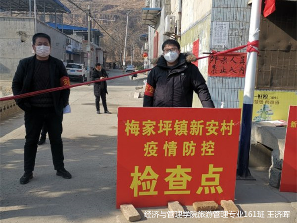 王济晖,经济与管理学院旅游管理专业161班学生,“渭师好青年”、“优秀共产党员”。“拦车、问好、测温、登记……”王济晖同志响应家乡号召,加入了陕西省渭南市富平县梅家坪镇新安村疫情防控检查点。每天按时值班,认真问询,作为一名共产党员,报着为人民服务的情怀,守护着一方安危,为打赢疫情防控这场特殊的战役贡献着自己的力量。