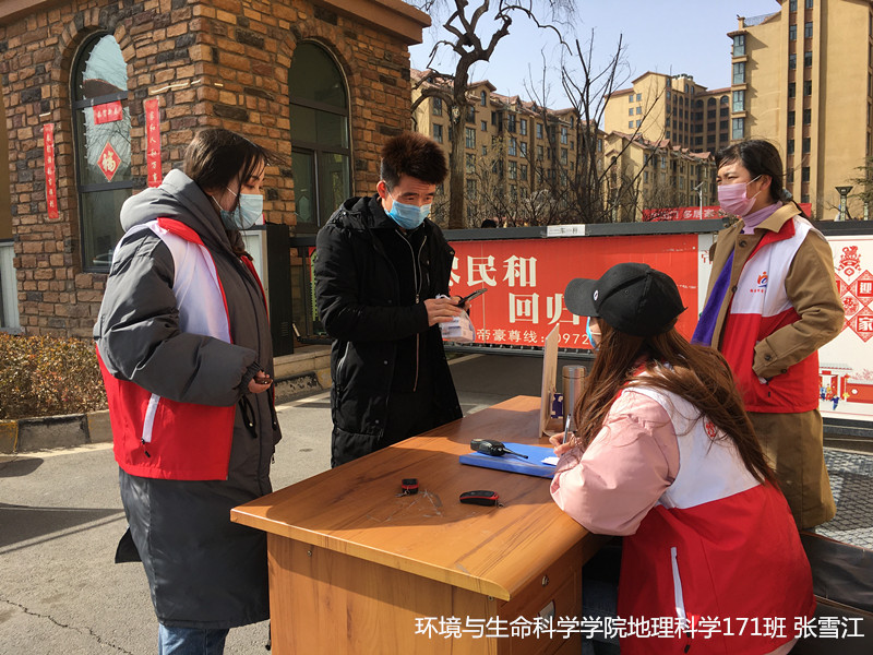 张雪江,环境与生命科学学院地理科学171班学生,积极响应家乡的疫情防控工作,主动加入青海省海东市青年志愿者服务队伍。从农历正月初八开始,同县委人员以及其他志愿者在街道设卡负责外来人员劝返、车辆登记和街道巡查,协助街道一线工作人员进行防控工作,分发消毒水,宣传防疫知识,为一线工作人员做好后勤工作。她说:“能够利用自己的时间、自己的技能,为国家,为社会,为家乡贡献自己的绵薄之力,我感到很骄傲。祖国如有难,汝应作前锋”。