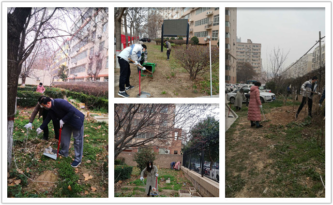 后勤服务中心全体党员按支部分两组开展劳动,在劳动现场,党员同志手拿铁锨、搂耙、扫把、簸箕等劳动工具,对家属区楼宇周围绿化带内的白色垃圾、枯枝烂叶、砖块杂物等进行集中清理和清运,对草坪里的雨水漏洞进行填平修整;同时对十号楼二道隔离门南草地树叶杂物进行清理,并在学校后勤物业服务微信群里发布实时图片,号召广大职工家属共同维护校园环境。